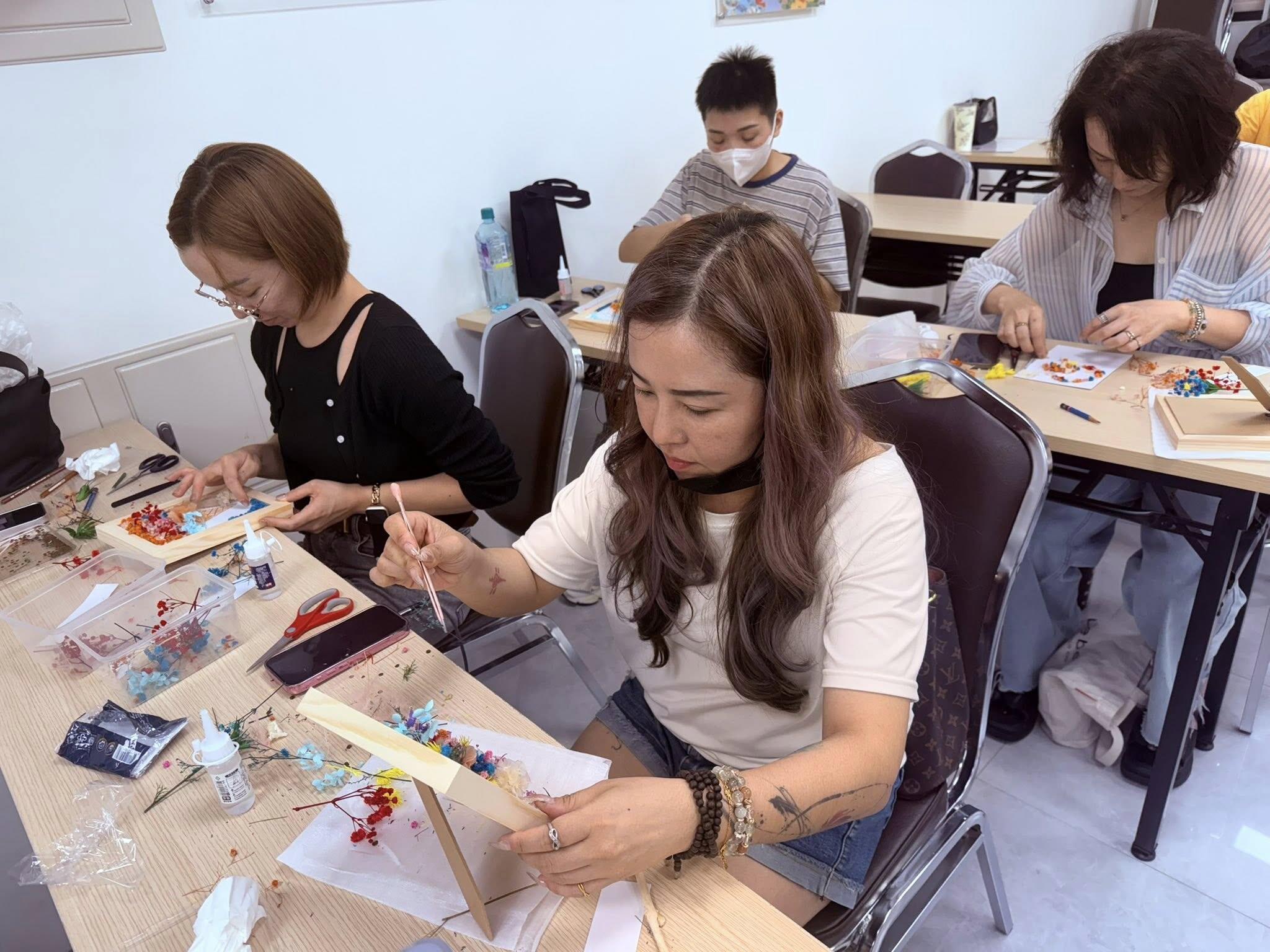 放鬆心情進行內心對話思考能力,並創造出屬於個人風格,特邀請「戀花坊」陳雅玲花藝教授來為會員們分享乾燥花與永生花夏日花卉饗宴,每一個作品都是滿滿的感動,心思縝密、巧思設計、手思細膩 。所謂的三思而行