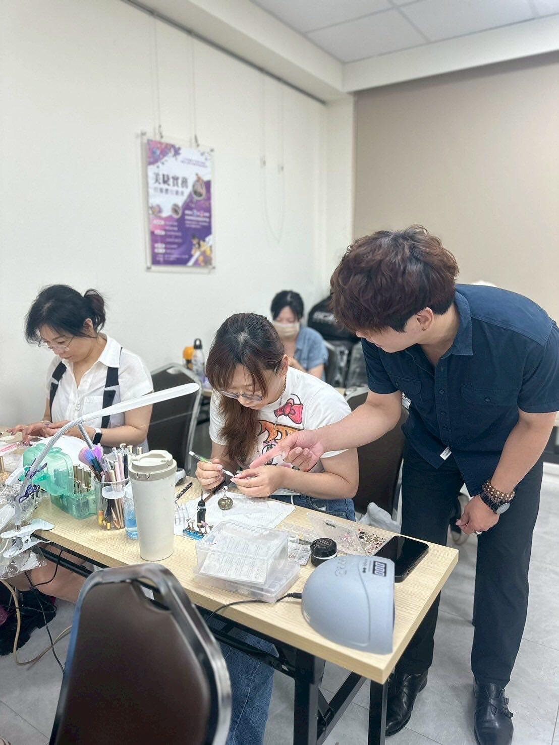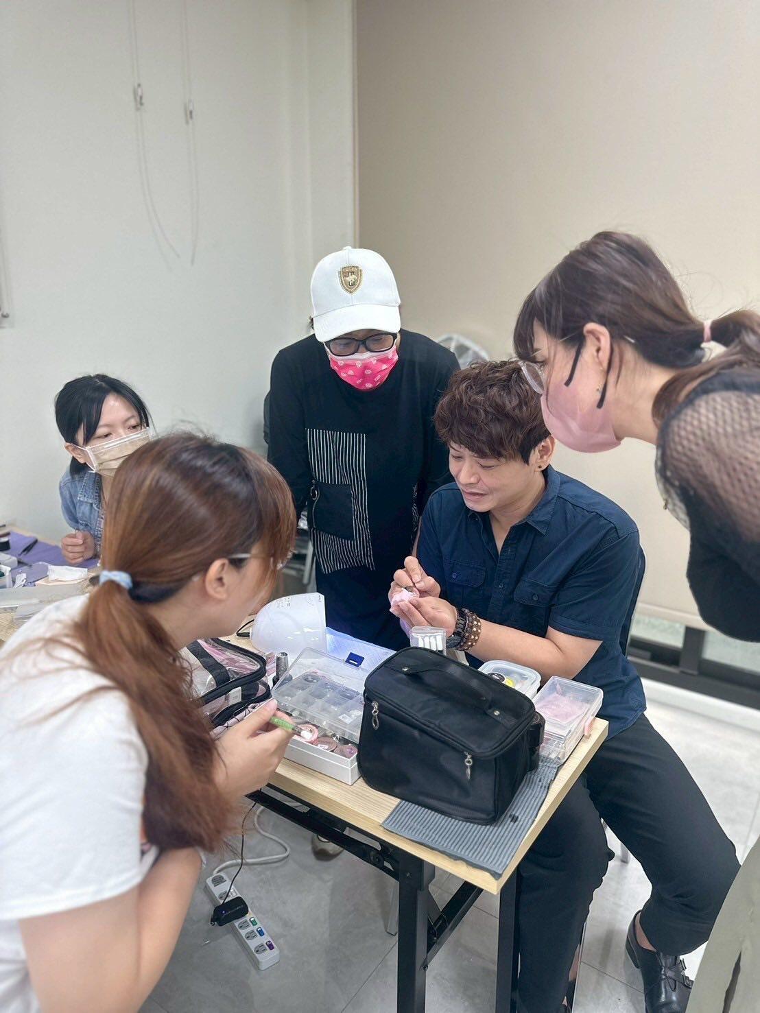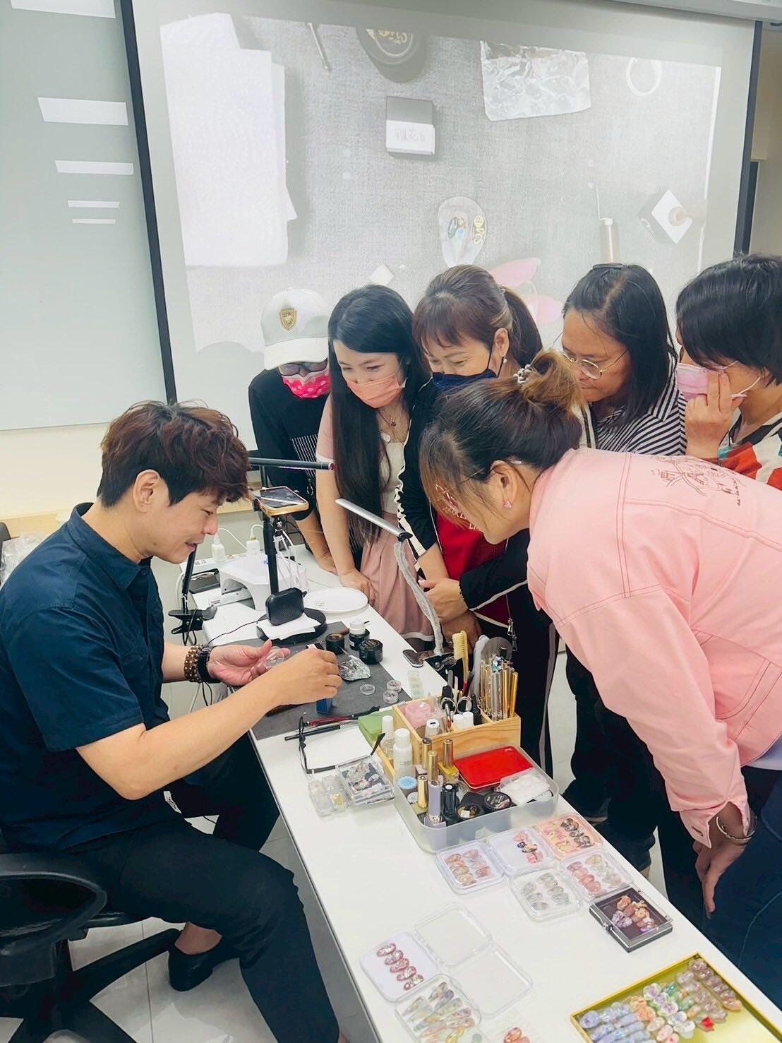 可掬的親切感,學員都很喜歡學習,學員們每個星期都在期待美甲課喔!還有熱心的班代即時幫忙老師與同學們的互動真的很棒,還有上課學員作品欣賞