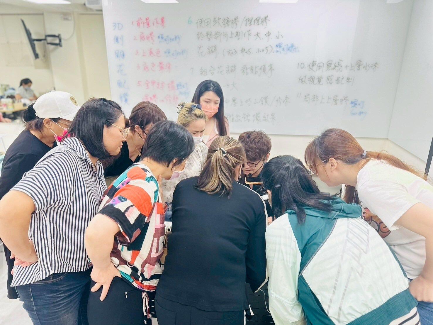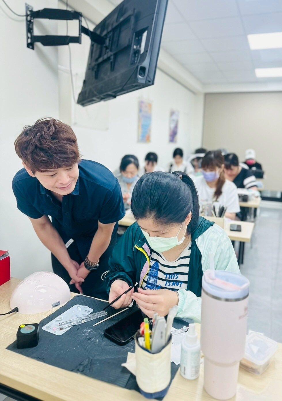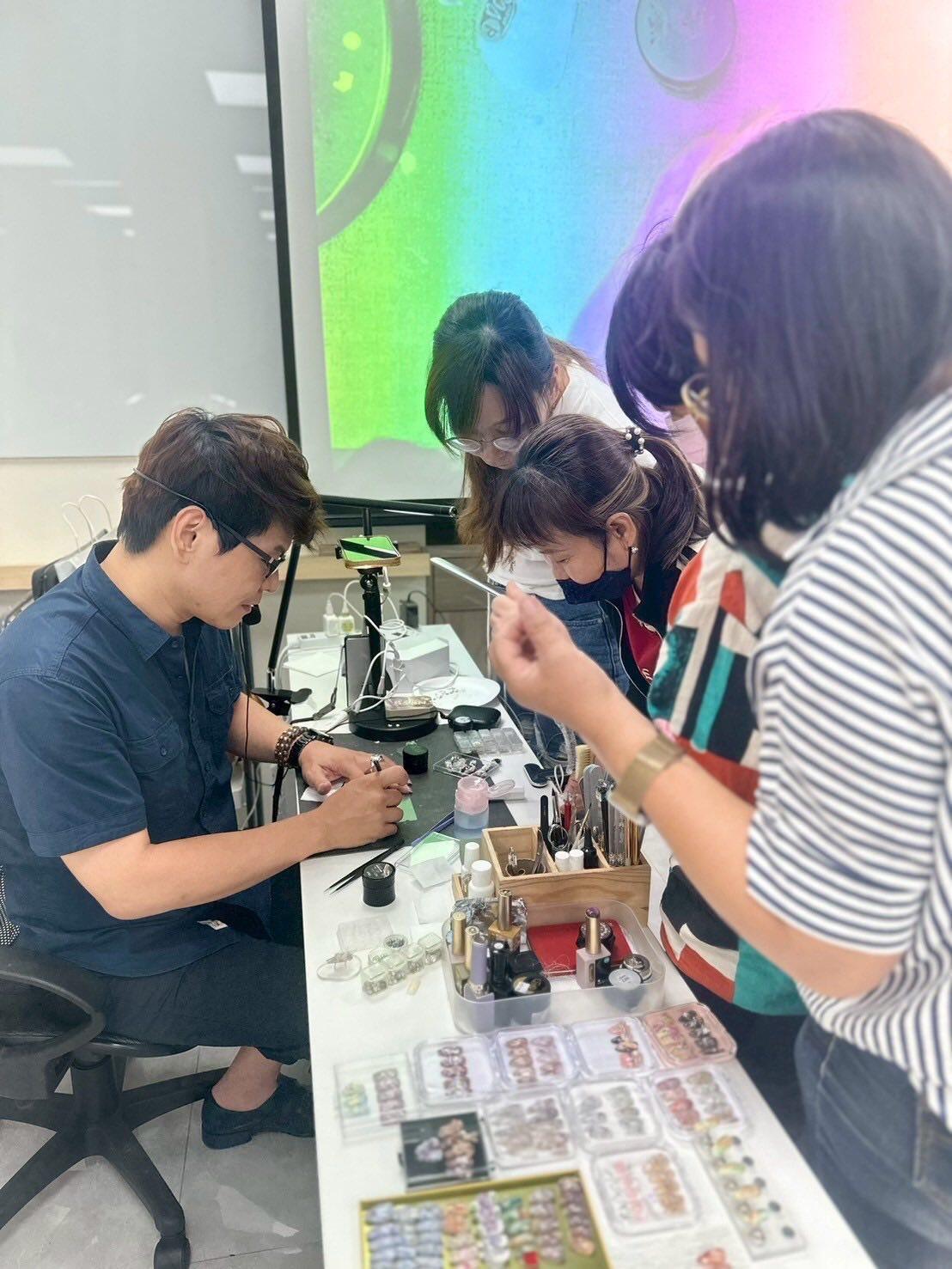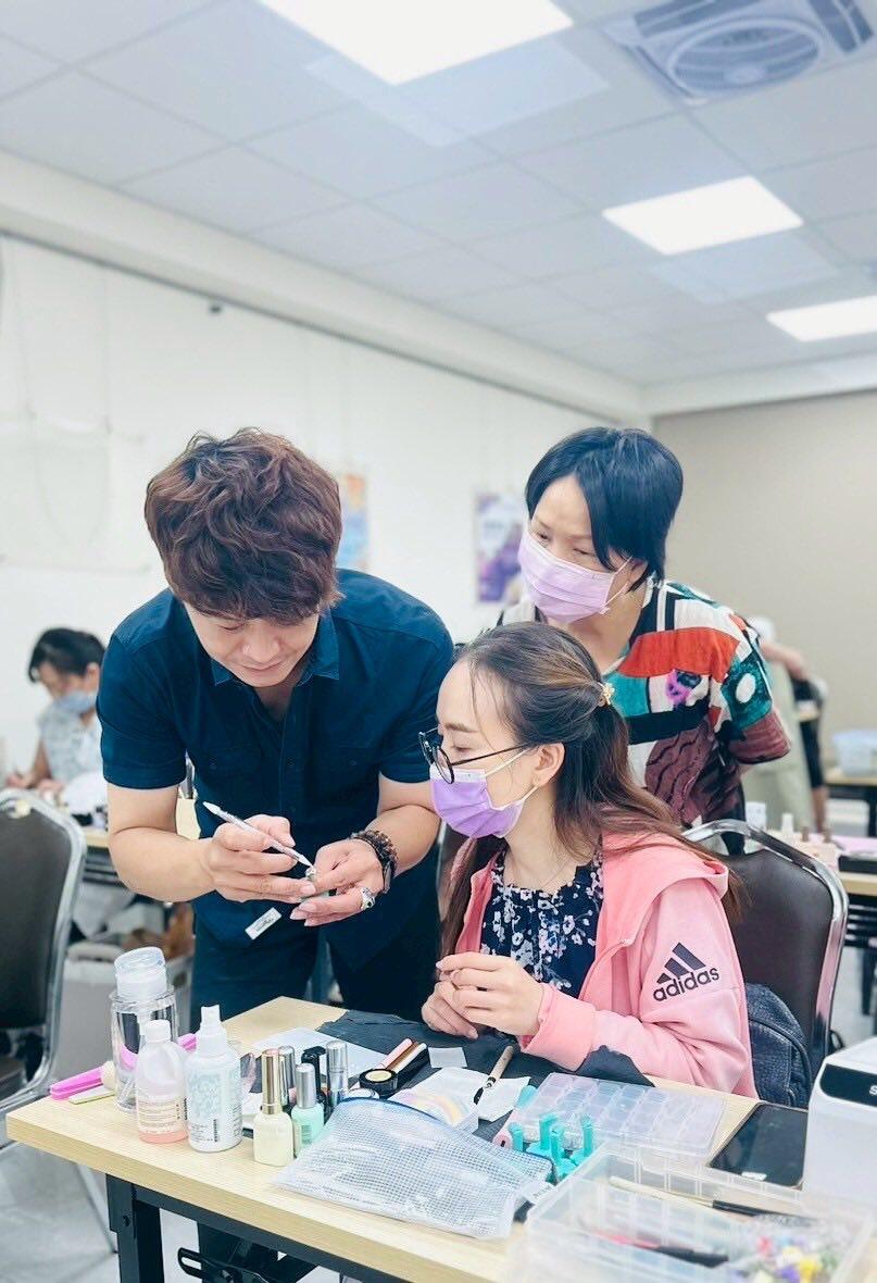 可掬的親切感,學員都很喜歡學習,學員們每個星期都在期待美甲課喔!還有熱心的班代即時幫忙老師與同學們的互動真的很棒,還有上課學員作品欣賞